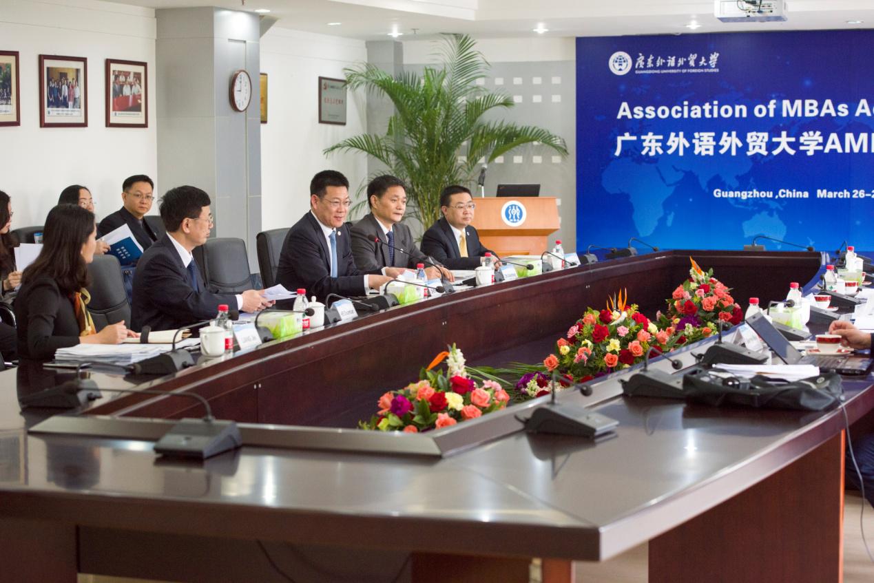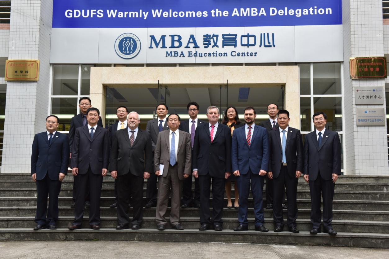 隋广军、仲伟合、石佑启、何传添及商学院领导班子与AMBA专家合影