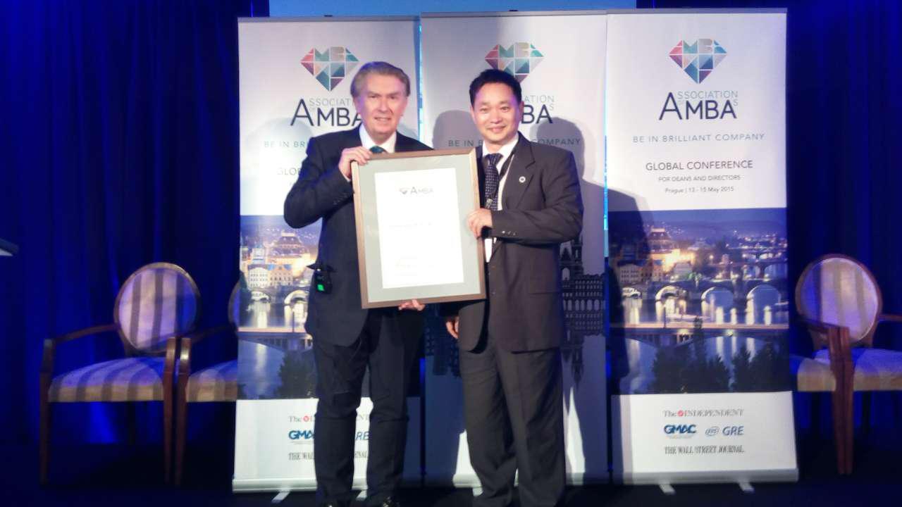 本网讯 5月14日,在捷克首都布拉格由英国工商管理硕士协会﹙Association of MBAs,简称AMBA﹚主办的AMBA全球商学院院长及主任年会上, AMBA国际管理委员会主席保罗•贾吉爵士(Sir Paul Judge)代表协会向商学院代表朱文忠执行院长授予认证证书。这标志着我校商学院MBA项目已经达到AMBA国际认证的要求,正式获得AMBA国际认证,成为中国大陆第26家、全球第225家通过AMBA国际认证的商学院。