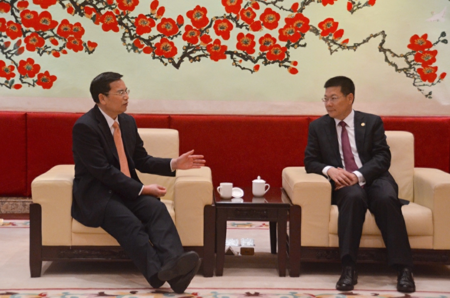 梁伟发与仲伟合交谈