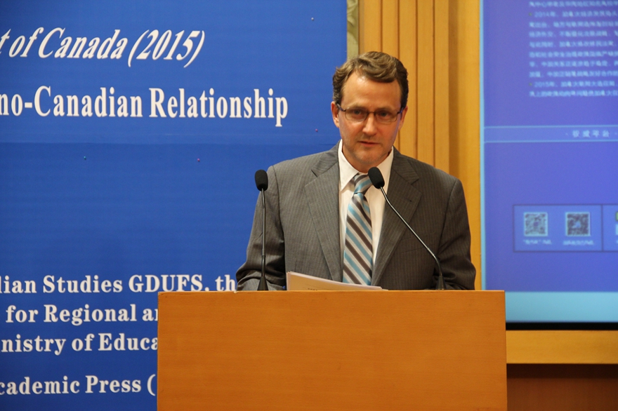 本网讯 2015年4月28日,《加拿大发展报告(2015)》发布会暨中国加拿大研究现状与中加关系学术研讨会于北校校国际会议厅召开。加拿大驻广州总领事馆政治经济与公共事物领事Stephen Doust,中国加拿大研究会副会长杜发春,我校校长、《加拿大发展报告(2015)》主编仲伟合,副校长方凡泉、阳爱民等出席了会议,听取了有关加拿大蓝皮书的主题报告,并分别阐述了对中加研究及中加关系现状的看法。会议由加拿大研究中心主任唐小松主持。