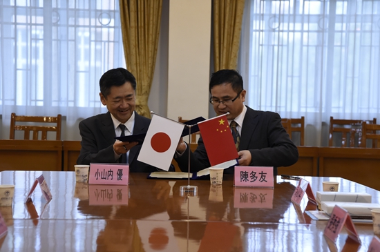 会见结束后,小山内優一行人与陈多友等人移步第二会议室签署创合作交流协议,正式确定两校合作关系。随后,高桥强对插班入学制度和奖学金政策进行了详细的介绍。插班入学制度是指我校学子两年留在国内读本科,两年到创价大学学习,最终可以获得两个学校的学位证书和毕业证。而奖学金政策则能根据学生的家庭经济情况进行半免和全面,并让品学兼优的学生获得额外的补贴。