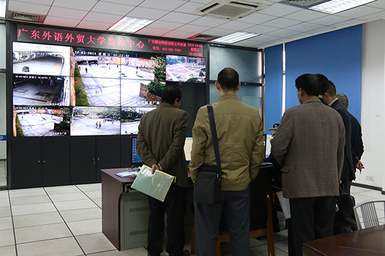 考核组查阅了我校创建“平安校园”工作的各项材料,并现场走访了监控室、图书馆、饭堂等校园各处,详细了解我校安保工作的开展情况。刘秋勇赞扬我校的工作材料准备得十分充分详实,实际的安保工作也做得十分优秀。他同时指出,我校的周边环境较为复杂,校园的安保工作不可放松,只有常抓不懈才能达到创建“平安校园”、保护师生安全的目的。