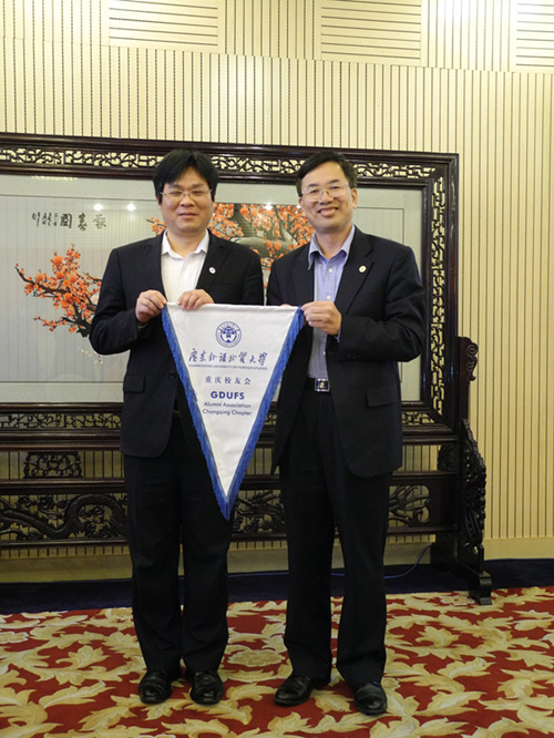 本网讯 12月6日,我校在重庆工作的校友们齐聚一堂,共同庆贺广外重庆校友会的成立。分管校友工作副校长何传添,校友总会秘书处秘书长谢伟光、副秘书长潘相宇,高尔夫球校友会秘书长姚伟创、肇庆校友会副会长林燕、番禺校友会筹备组主要负责人杨炳尧等校友出席了本次成立大会。筹备组主要负责人陈香校友(98级商英)介绍了重庆校友会筹备工作的大概情况。张江凌校友(99级商英)宣布重庆校友会第一届理事会成员建议名单,获得到场校友和嘉宾通过。