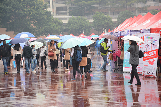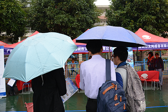 毕业生冒雨参加招聘会