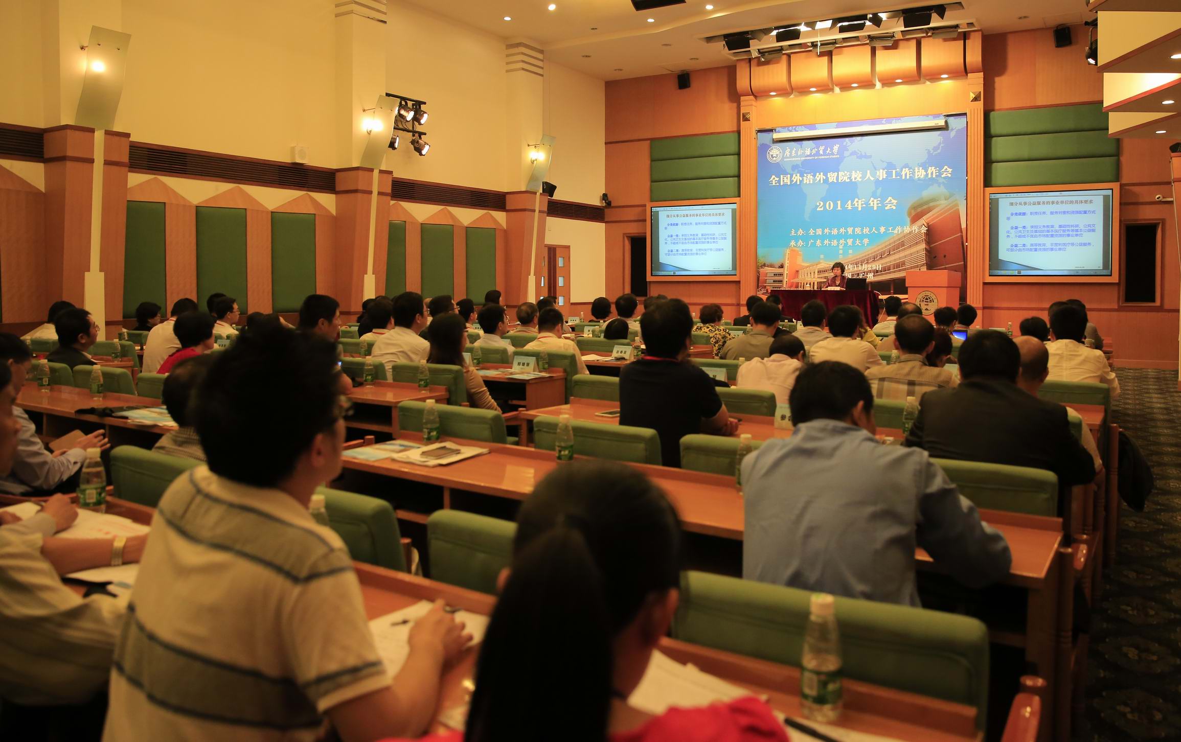 本网讯 11月29日,全国外语外贸院校人事工作协作会2014年年会在我校举行,教育部人事司副司长赵丹龄、广东省教育厅副厅长魏中林、人事处处长陈东海,广东省教育研究院副院长黄崴,人力资源和社会保障部事业单位人事管理司岗位管理处处长梁江,我校校长仲伟合以及来自北京外国语大学、上海外国语大学、对外经济贸易大学、上海对外经贸大学等共15所外语外贸院校的校领导、人事部门负责人、广东省内中山大学、华南理工大学、暨南大学等13所本科高校的人事部门负责人及我校二级学院人事工作管理负责人约100人参加了本次年会。会议开幕式由我校副校长阳爱民主持。