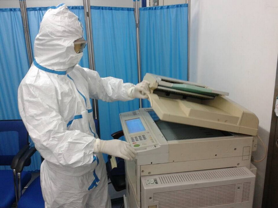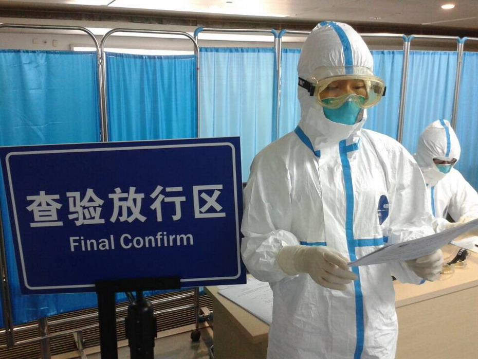 本网讯 近日,我校西语学院法语系的12名学子走上了抗埃博拉的最前线,他们穿上防护服、戴上防护用具,在广州白云机场协助来自几内亚等埃博拉重疫区的旅客填写核查各种信息工作。