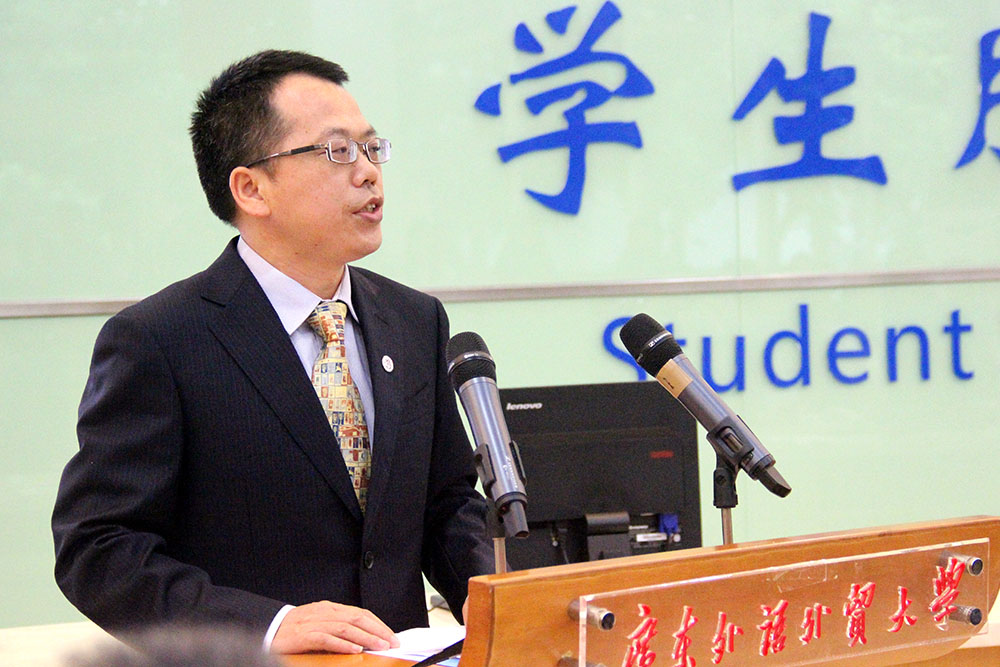 隋广军在致辞中回顾了我校建校50年来的风雨历程,他指出,50年对于一所高校来说虽然不长,但是我校已经成长为广东省乃至全国最优秀的高校之一。为了迎接50华诞,我校将开展一系列务实、简朴而又有意义的校庆活动,倒计时的开启,标志着建校50周年系列活动筹备工作进入全新阶段,我校将以此为契机,继续向前迈进;同时,要凝聚各方力量,为广外的下一步发展出主意想办法,但这也意味着我校的工作任务将更繁重,在接下来的一年中,我校将进一步求稳步推进对外宣传、校史编纂、海内外校友联络、学术交流和对外合作等方面的工作。隋广军希望,在明年校庆时,我校各项工作能够有丰硕的阶段性成果,让广外朝下一个更高的目标迈进。