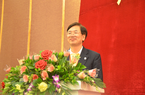 仲伟合代表学校致辞,他围绕“广外是什么样的学校,广外近些年做了什么以及取得了什么成绩,广外50周年要做什么以及广外未来如何发展”这三个要点,介绍了广外从建立到现今的发展历程和取得的巨大成绩。他表示,如今学校的社会认可度日益增强,招生和学生就业情况名列广东省高校前茅。他还提到广外将从六大模块进行重点改革,努力建设高水平的国际化特色鲜明的大学。最后,他提到50周年校庆以“重逢 筑梦”为主题,希望校友可以建言献策,心揣广外梦,共同托起广外的明天。