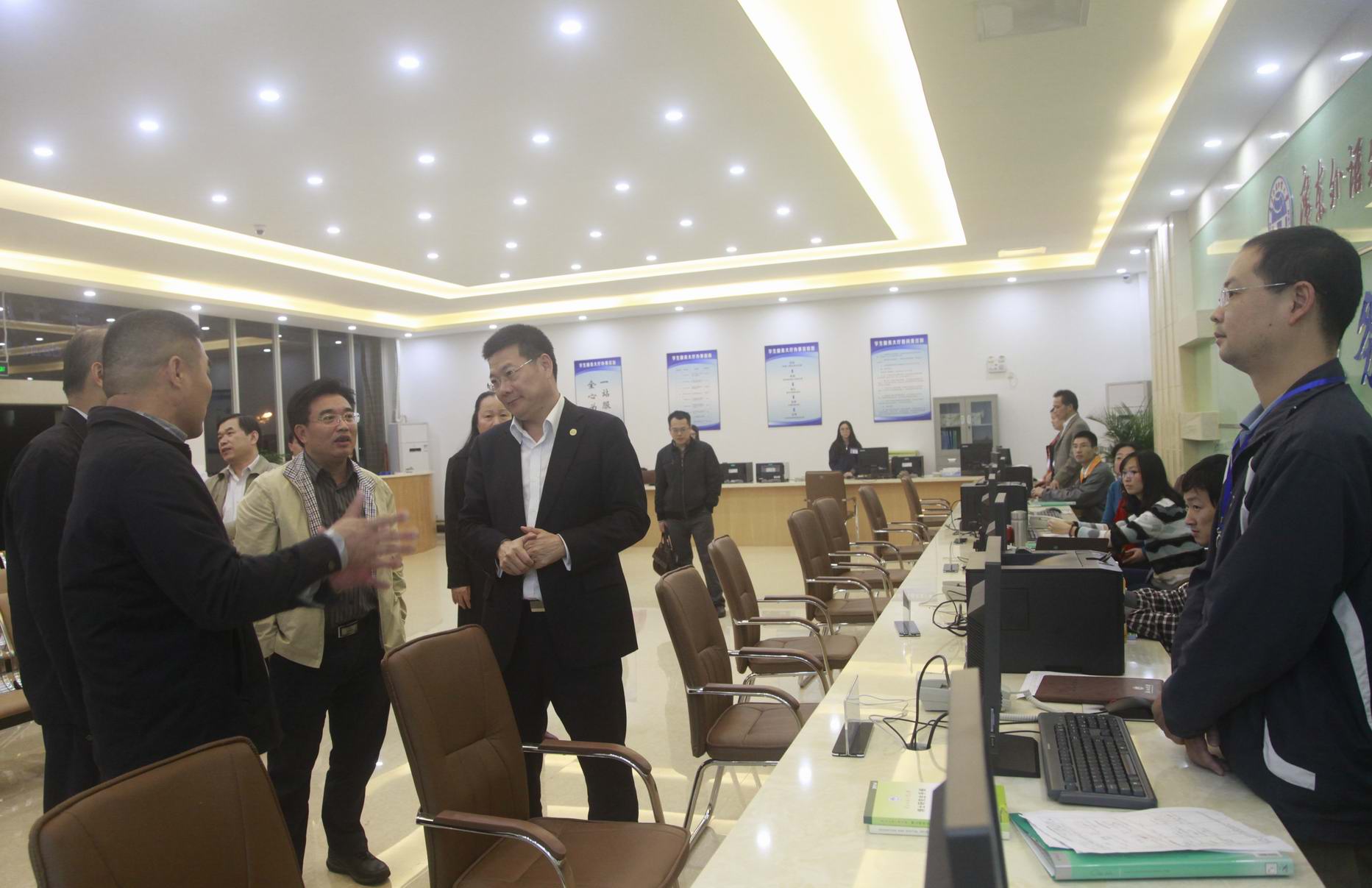 仲伟合在现场与相关部门负责人探讨服务中心今后的建设