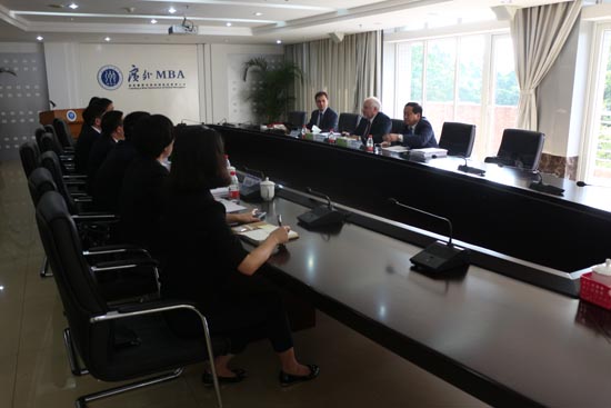 我校副校长兼商学院院长、MBA教育中心主任何传添,商学院副院长兼MBA中心执行主任朱文忠,商学院班子成员及认证工作相关人员参与了本次预认证活动。