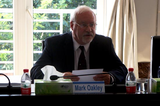 上午,预认证情况汇报工作及领导座谈会在MBA402会议室召开。会议由王重鸣主持。何传添致欢迎词。接着,朱文忠代表商学院及MBA教育中心做全英文预认证报告,介绍了大学、学院及MBA项目的发展历程、特色与优势,重点汇报了MBA项目的战略实施、面临的挑战及未来的持续改进计划。随后,AMBA认证专家和商学院领导进行座谈交流。Mark Haydn Oakley、George Iliev和王重鸣对学院及项目的管理、架构、师资力量、资源整合、学科发展、课程设置、国际接轨、自评报告、教学模式等提出了疑问,我校商学院领导对此一一作出详细具体的解答,并提供充分的文字资料与表格加以说明。