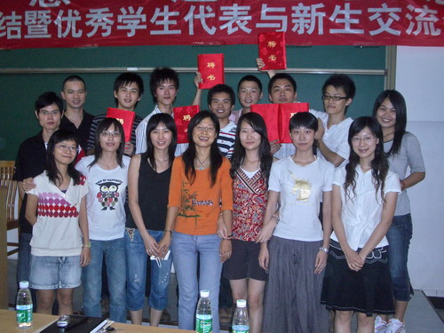 本次会上,团委书记梁玲华老师还为第三届团委,第五届学生会优秀干部颁发聘书。原团委副书记张淑媛等7名同学获得“优秀团委干部”的荣誉称号。原学生会主席陈望等8位同学获得“学生会优秀干部”荣誉称号。