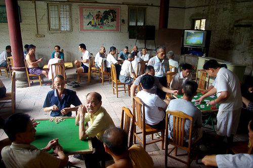祠堂里开牌局,是村民们的消遣时刻