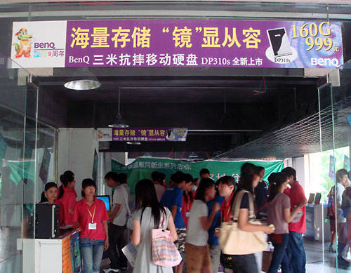 本网讯 9月27日迎来了云山广源数码港的九二七数码体验日。当笔者来到位于学生公寓5栋架空层的云山广源数码港时,看见那里已经吸引了一大批的同学驻足观看和咨询。而数码港的工作人员的热情周到的服务,也让人感觉亲切。