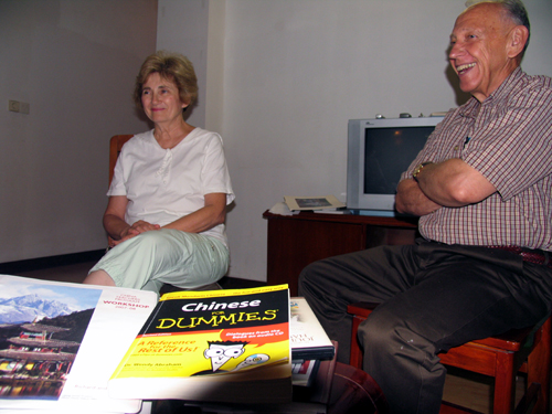 Richard Ray和Laura Ann Ray来自遥远的太平洋彼岸的美国,这对古道热肠的夫妇一直认为他们对中国有一种特殊的情感。在他们向记者展示全家福时还不忘问上一句:“你们发现有什么特别吗?”记者经过一番观察,惊讶地发现照片中有一个中国小男孩。接着,Laura Ann给出一个更让记者吃惊的回答:“这是我的孙子。”Laura Ann看着一头雾水的记者,慢慢地道出缘由。原来,照片中的中国男孩曾经是孤儿院的孤儿。Laura Ann的儿子以前在华当医生期间曾为小男孩做过兔唇手术,正是在这机缘巧合之下,Laura Ann的儿子从孤儿院领养了小男孩,如今也就变成了Laura Ann的孙子。Richard Ray和Laura Ann Ray带着教授中国人讲地道英语的愿望,经过China Teaching Program Workshop培训后,越过太平洋,来到了神州大地。