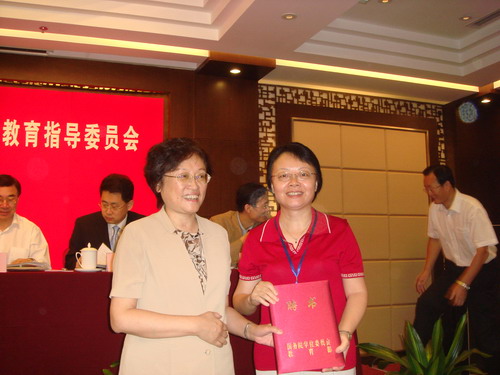 吴启迪向教指委委员颁发了由国务院学位办和教育部联合聘任的聘书,MTI教指委主任委员由中国外文出版发行事业局副局长黄友义担任,我校仲伟合教授受聘为MTI教指委副主任委员,穆雷受聘为教指委委员兼秘书长。副主任委员还有北京外国语大学何其莘教授、外交部翻译室副主任姜江、南京大学许钧教授等。委员包括15个第一批试点单位的各1名,共20人组成。