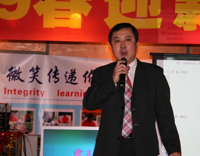 MBA联合会副主席王进宏介绍了联合会的基本情况并作了“MBA如何践行微笑(SMILE)价值观”的主题发言,随后刘慧和陈丽同学分别代表新老同学代表用英语作了对微笑(SMILE)价值观的分享了自己的理解与感想。