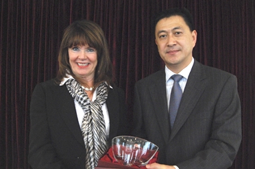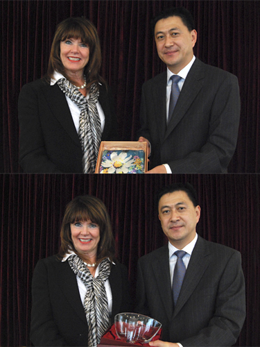 隋广军与安吉拉• 墨菲互赠纪念品