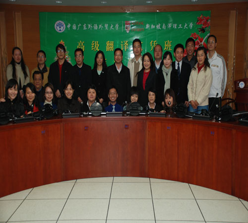 本网讯 2008年12月26日下午,第三期新加坡南洋理工大学高级翻译文凭班结业典礼在六教同传室A301顺利进行。高翻学院院长余东、党委书记梁学宏、副院长莫爱屏、MTI中心主任赵军峰、全体担任文凭班课程的教师及来自新加坡南洋理工大学人文社科学院项目负责人高虹老师和文凭班的学员们参加了结业典礼,结业典礼由院长助理詹成主持。