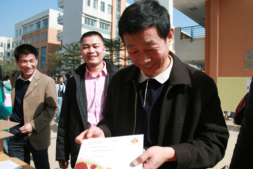 学校领导、学生处、后勤处和又康超市给予了支持。中午12点,校党委副书记许国彬在教学楼A栋过道的义卖现场捐购贺卡,并进行现场封笺。许国彬祝愿灾区的同学们“新年快乐,身体健康”,“好好学习,将来成为国家的栋梁之才”。