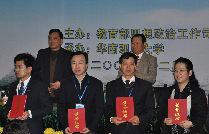 本网讯 12月25日上午,教育部2008年高校校园文化建设优秀成果表彰暨专题工作研讨会在华南理工大学举行,北京大学、清华大学等一百多所获奖高校的代表出席大会。我校法学院党委书记金良成代表学校参加会议并接受表彰。