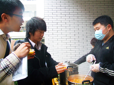 活动展板列出了一系列有关泰国风俗的图文介绍,同时向来宾提供泰国最著名的冬荫功汤,以酸、辣、咸而著称的海鲜汤吸引了无数同学,现场顿时排起了长队。