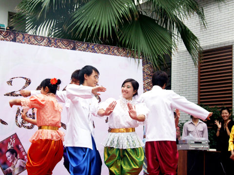 由东语学院泰语系师生们精心准备的表演为观众们展示了一场别开生面的泰国文化盛宴。富有泰国风情的舞蹈和歌曲,精彩的泰国舞台剧表演,制作精美的浪漫水灯,美味的冬阴功汤……向观众们展示了美不胜收的泰国风情文化。