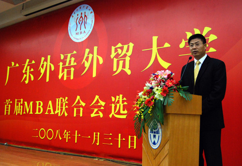 孙建军为此次选举致辞。他提到,此次成立的联合会是我校MBA的“首届”联合会,希望其能为广外的MBA开启新的篇章。