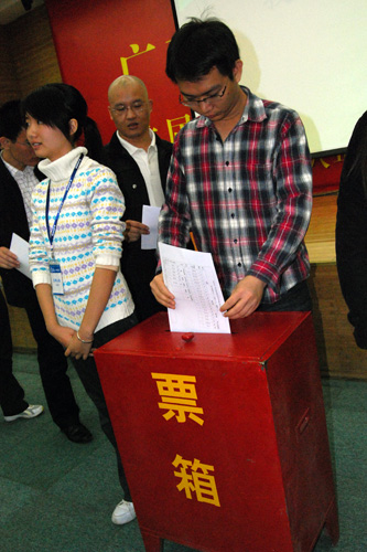 研究生部部长敖湘晖、MBA教育中心主任孙建军、副主任吴易明、主任助理马绍壮以及教师代表曾成、杨文慧、杨丽、苏高阳、周丹、杨金俏等出席了此次选举大会。大会通过了联合会章程和选举办法。选举大会的选举工作由选举委员会主持,其成员由MBA教育中心领导和老师组成,MBA中心主任孙建军担任委员会主席。