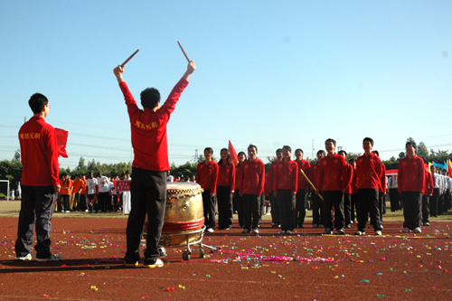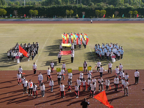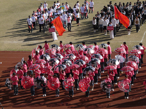 随后各学院方队列队入场,在北京奥运会成功举办的大背景下,本次校运会开幕式各学院代表方阵都在自己的入场仪式中添加了不少奥运元素,凸显奥运特色。
