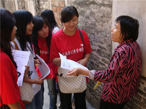 深入学习实践科学发展观活动开展以来,政管学院各党团支部紧紧围绕科学发展的主题,以学带行,带领同学们走进社区,深入基层,了解群众,关心民情。