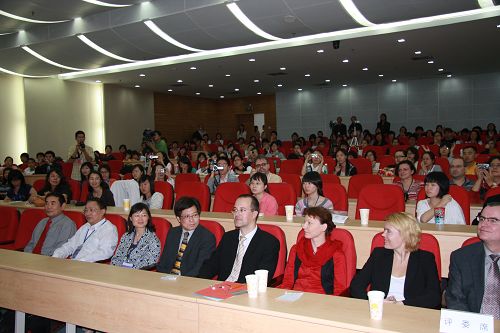 此次辩论赛由教育部高等学校外语专业教学指导委员会德语分委员会及歌德学院共同举办,我校承办,中国教育电视台还特派记者给予媒体支持。朱小安、陈良梅、虞龙发、闫振江、Frau Brand、 Herr Wistoff及Clemens Treter等著名德语专家担任了本次大赛的评委,我校德语教师孔礼德担任大赛主持。