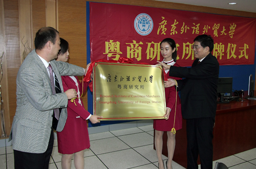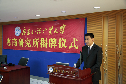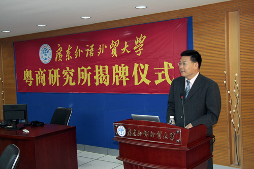 本网讯 11月秋意已浓,伴着凉爽的秋风,我校北校区第六教学楼同声传译教室传出了热烈的掌声。11月16日上午,我校粤商研究所正式揭牌成立。