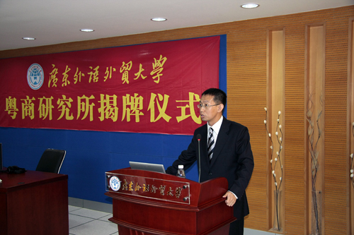 此外,我校经济贸易研究中心的申明浩博士对粤商研究所的成立宗旨、功能定位、运行模式、依托机构、研究队伍、发展目标等方面进行了简要的介绍。