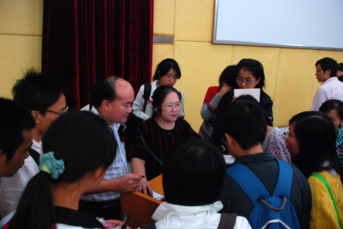 讲座结束后,许多学生自发请教老师问题(图/郑威)