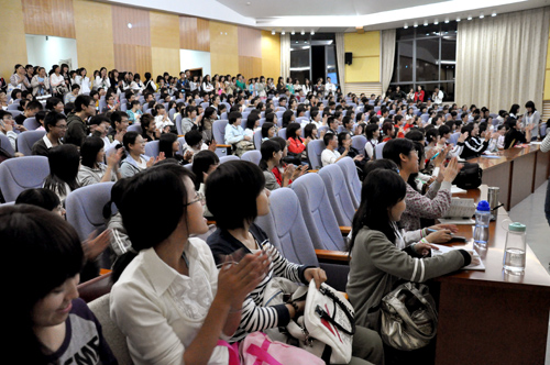 记者在讲座结束后采访了王桂珍。她说到,作为英语专业类的院校,广外的英语教育氛围很好,而且同学们都有强烈的学习愿望,“希望能够坚持下去,并把它培养成一种良好的习惯。”