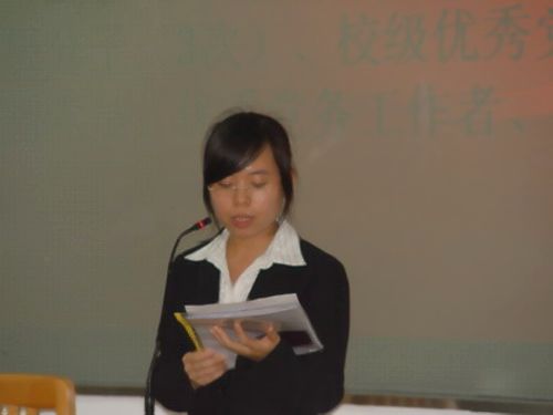 孙秀丽代表学院党委为大会致辞。她首先对即将宣誓的学生党员表示衷心的祝贺。同时,她勉励新党员要认真学习、实践科学发展观,充分运用学校各种资源、平台,加强学习和锻炼,使自己成为班里的先锋模范,成为国家的中流砥柱,从而不愧作为一名党员的承诺。