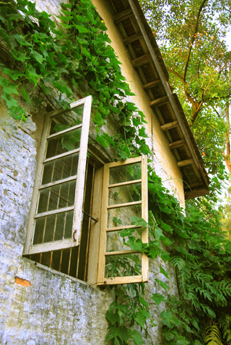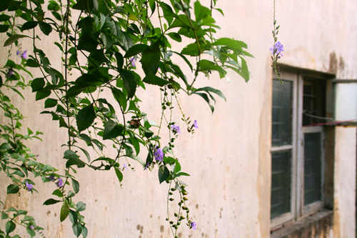 旧窗边静静守候的花儿