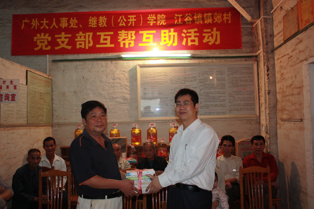 本网讯 为了贯彻省委组织部《关于城乡基层党组织互帮互助活动的意见》的文件精神,11月5日,在人事处处长方迎生的带领下,人事处党支部、继教公开学院机关二支部一行19人,前往四会市江谷镇镇郊村开展城乡党支部“五个一”互帮互助活动。