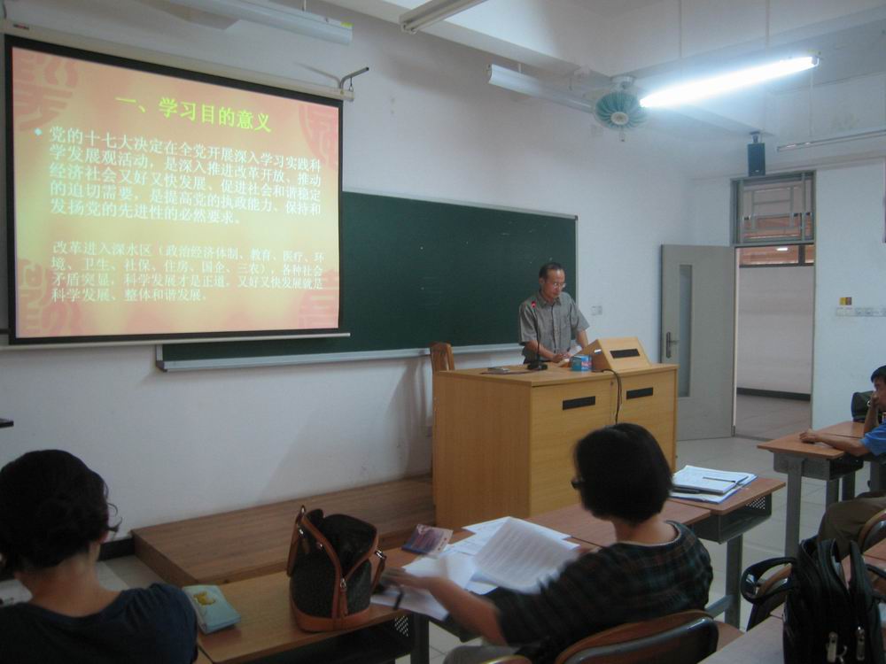 本网迅 10月23日下午,西语学院召开学习实践科学发展观动员大会。会上,西语学院党委书记黄巧萍向全院教工阐明了学习实践科学发展观的目的和意义,并依照《中共广外大开展深入学习实践科学发展观活动实施方案》,对学习实践活动的对象、要求、步骤、环节和重点作了说明,提出了学院开展学习科学发展观活动的要求与设想,号召党员同志积极投入到学习实践活动中,争当学习科学发展观的排头兵,也希望教工群众支持配合好学习实践活动。