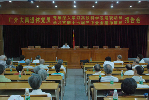 陈建平在会上作了情况通报。陈建平说,党的十七届三中全会的召开是全党政治生活中的一件大事,今天组织这个报告会就是为了让离退休党员更好地了解和掌握会议精神。陈建平还就学校开展深入学习实践科学发展观进行了动员。