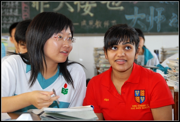 在高三(11)班的英语课堂上,记者见到,顾旸同学正对搭档Alpa轻声解释着什么,Alpa心领神会,两人表现十分默契。课后,当记者试图向英国学生们了解中英两国英文课的差异时,他们笑着回答,最大的区别在于,中国的英语课是向学生们传授英语词汇、语法等知识,而在英国的英语课堂上,他们则常常阅读英文的世界名著。
