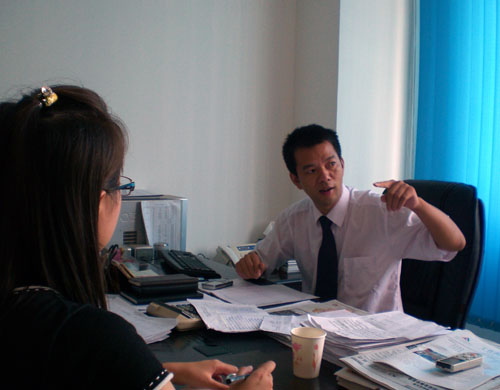 王主任向记者陈述南校宿舍安全现状(图/关洁灵)