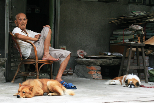 生活宁静而惬意,连狗也摊在地上享受午后的阳光