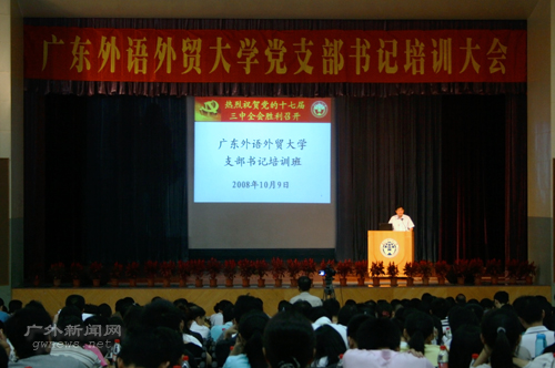 本网讯 10月9日,我校在南校区学术报告厅举办了党支部书记培训会。基层党支部书记,基层党委书记、副书记,党总支书记、副书记,直属党支部书记,专职辅导员等参加了培训。校党委书记徐真华在会上提出积极实施“三个抓手”、“四培工程”的工作建议。