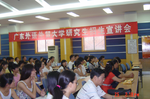 据悉,广东外语外贸大学2009年研究生招生宣传工作为期一个多月以来,为吸引更多优秀生源,保障研究生生源质量的稳步提升,研究生处积极利用各种平台、创立多种模式全面展示我校研究生教育成果,大力开展研究生招生宣传工作。比如,制定详尽招生宣传方案,印制宣传材料;通过研招网和校内招生网发布我校相关的研究生招生信息,短短两个月,点击次数近6万;参加教育部科技发展中心和中国教育在线主办的全国研究生招生咨询会;走访相关兄弟院校进行现场招生宣讲会,巩固优势生源。