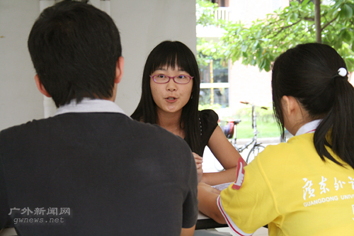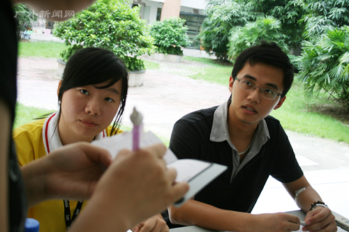 邓同学是经贸学院大二的学生。面试完以后,他表示,因为自己面试的时候太紧张了,没有发挥自己应有的水平,所以有些遗憾。在此之前,他曾多次参与志愿者活动,如三下乡志愿者活动,08年春运志愿者活动等。他觉得做志愿者虽然很累很辛苦,但是很值得,“因为能为别人服务是一种幸福。”他面试的是外事志愿服务队,他希望通过志愿者活动接触到社会不同层面的人,从而达到锻炼自己的目的。