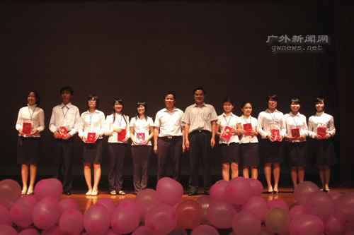 本网讯 9月26日晚上,“新长城”广东外语外贸大学自强社三周年庆典晚会暨各学院分社成立大会在南校区学生活动中心举行。出席晚会的嘉宾有校党委副书记许国彬、学生处处长植秀聪、副处长杨敏生以及捐赠人吕平、黄辉明等。兄弟院校的自强社社员以及各学院济困助学的指导老师也参加了此次活动。