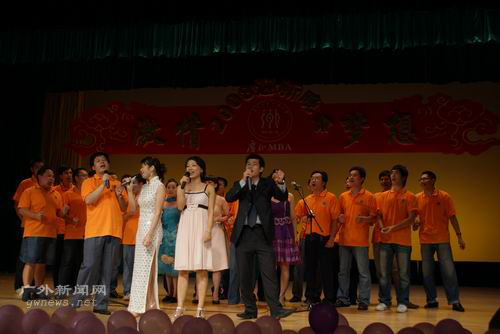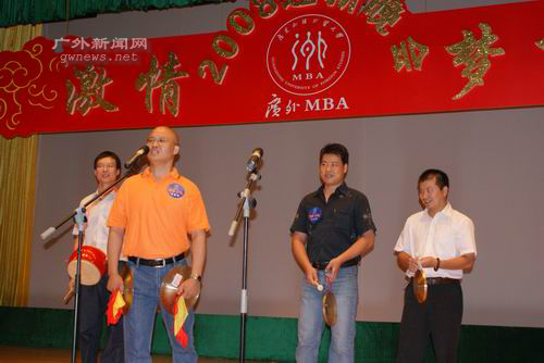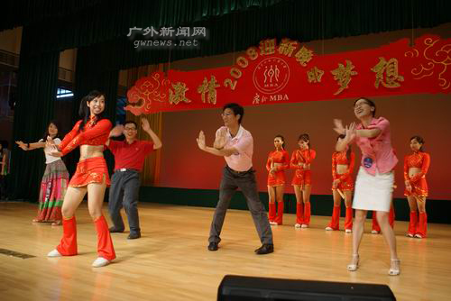 本网讯 9月20日下午,广外2008MBA学员迎新酒会、晚会分别在六教中庭及报告厅隆重举行。领导与学员欢聚一堂,交流心得,并一同观赏了一场精彩纷呈的晚会。
