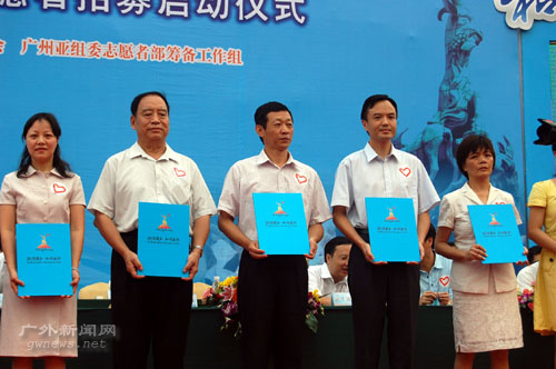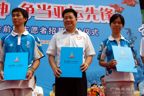 本网讯 9月21日上午,第16届广州亚运会前期志愿者招募启动仪式在广州天河体育馆广场隆重举行。广州亚组委常务副秘书长、广州市副市长许瑞生,团省委副书记白涛,广州亚组委副秘书长、广州市政府副秘书长古石阳,广州亚组委副秘书长、广州市体育局局长刘江南等省市有关部门领导出席了此次活动。
